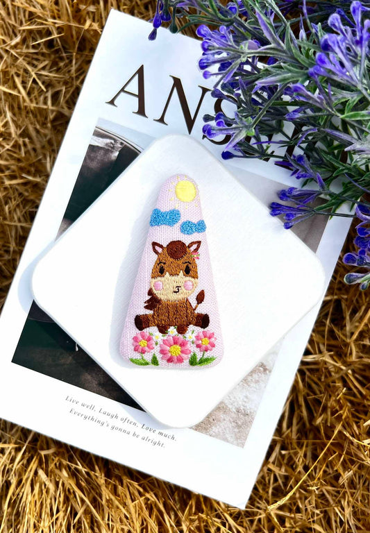 Cow | Foal | Tiger Hair Embroidered Hair Clip