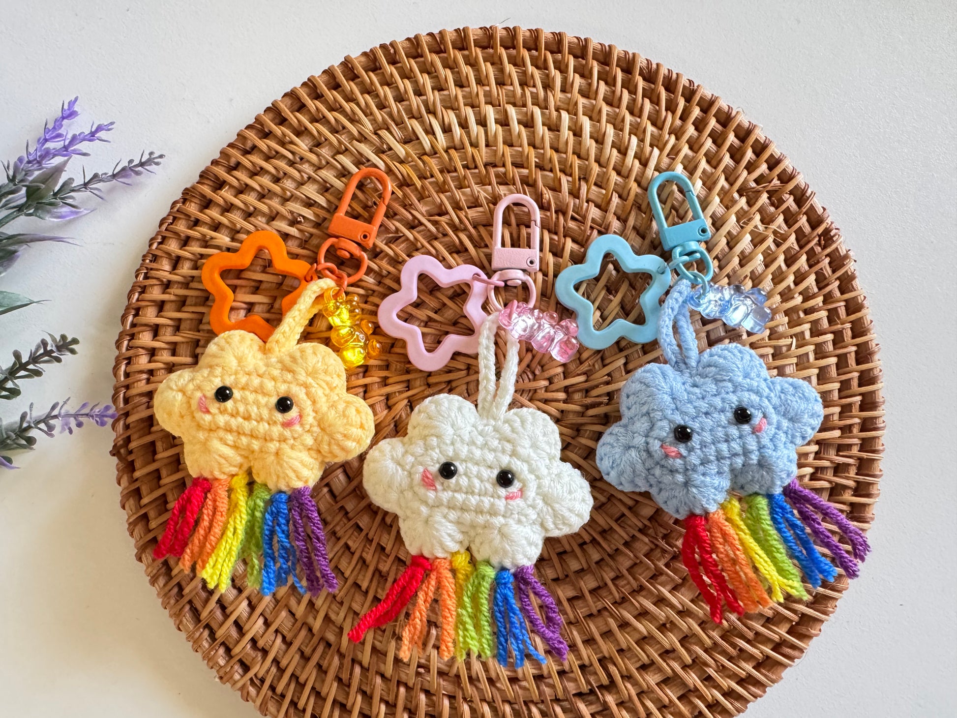 Adorable Cloud with Rainbow Crochet Keychain