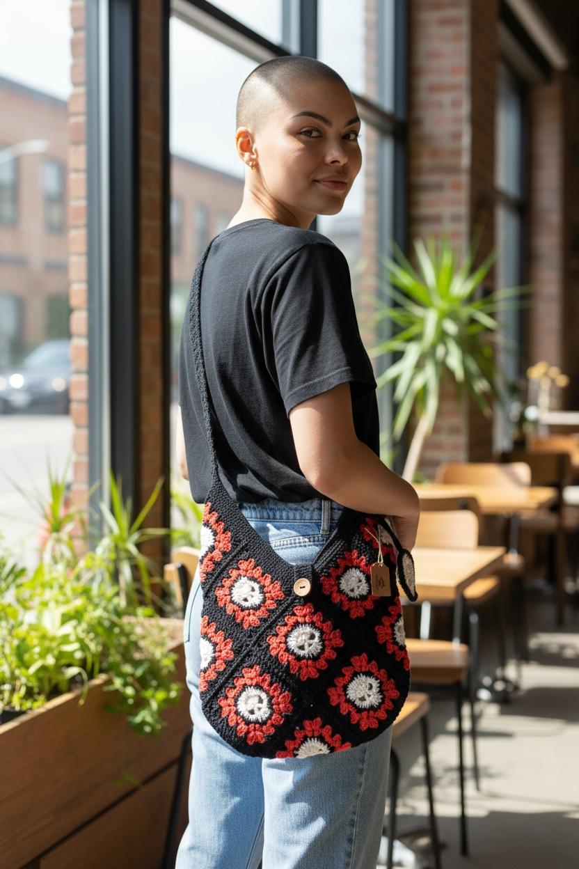 Professionally crafted and adorned with a skull charm, the Skull Crochet Bag is a standout accessory. Its sturdy design ensures durability, making it the perfect bag to carry around with you.
